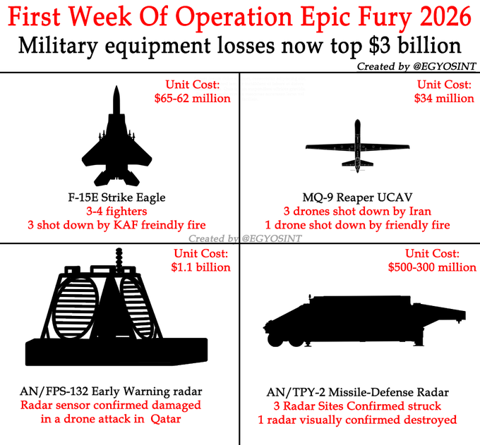 09-Mar, 2026: After 10 days of fighting, Iran/Russia has been able to suppress US-Israeli airstrike capacity by 65 percent. Source. Further reports are that Trump is looking for an off-ramp and his people have made a 2nd overure for a ceasefire.